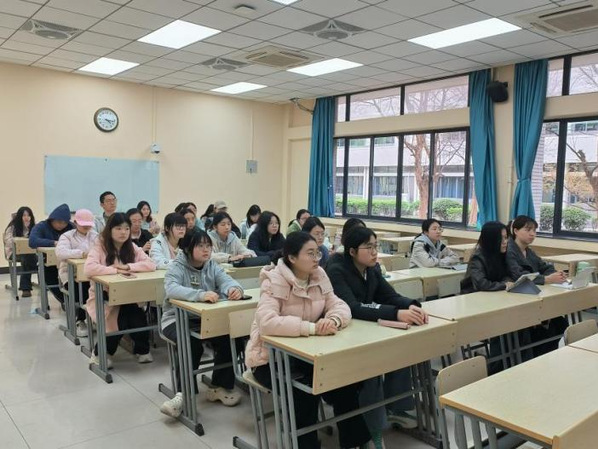 闫瑾首先回顾了项目自启动以来的志愿者招募与培养历程,对全体志愿者坚守初心、克服困难、高质量完成教学任务的奉献精神致以高度肯定和诚挚感谢,重点阐述了项目对乡村振兴战略的实践意义。她指出,“蒲公英计划”以教育帮扶为核心,通过外语课堂搭建城乡教育资源互通桥梁,既为乡村儿童开拓国际化视野,也让高校学子厚植社会责任意识,是教育赋能乡村发展的创新实践。她强调, “蒲公英计划”是学院精心打造的品牌活动,需要持之以恒,久久为功。期待青年学子继续以专业知识反哺社会,让教育公平之花开遍乡野。