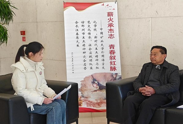 “薪火承杰志青春续红脉”社会实践团赴徐州淮海环球港,对邳州市王杰精神研究会会长汪春恩进行专题访谈。