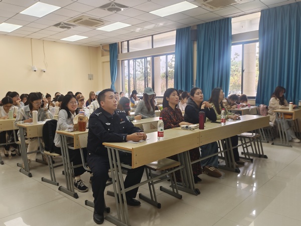 为深化国家安全意识,普及网络安全知识,4月11日上午,电子游艺 英语22-5班团支部联合英语23-1班、23-2班团支部在博4C104室开展“国家安全,青春挺膺”主题团日活动。杨志林警官受邀到场宣讲,辅导员闫瑾、刘倩、班主任孔蓓蓓及团支部同学共同参与,活动由22-5班团支书陈雨彤主持。