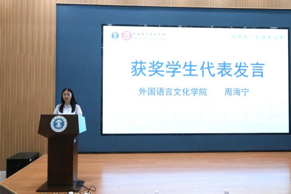 交流发言环节,获奖教师代表王梦景结合多年指导和参与各类英语校园活动与高水平学科竞赛的经历,回应了大家在参加活动与赛事中的困惑,鼓励学生在语言世界中勇敢探索;电子游艺 周海宁、电气学院杨千城代表获奖学生发言,分享了外语学习的心路历程以及参加外语类学科竞赛的成长与收获。