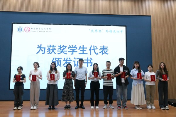 刘婷婷宣读“学科竞赛学生标兵”、“大学英语学习之星”和“学科竞赛优秀指导教师”表彰决定。张向东、石礼伟、丁建范分别为优秀指导教师代表、大学英语学习之星代表和学生标兵代表颁发证书。
