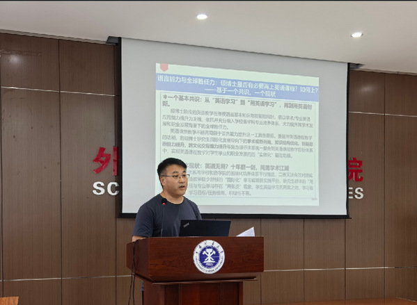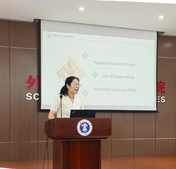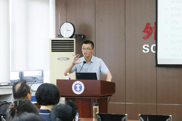 刘婷婷副院长作了题为“从通用英语向学术英语教学范式的转变”的学术报告,着重探讨了学术英语能力对学生专业学习、科研创新及国际交流的支撑作用,并结合教学实践,分享了学术英语课程体系重构、师资能力提升、评估方式革新等方面的具体路径。报告为深化大学外语教学改革提供了富有启发性的新视角和切实可行的行动方案,为下一步学术英语课程的开展提供了重要指导。