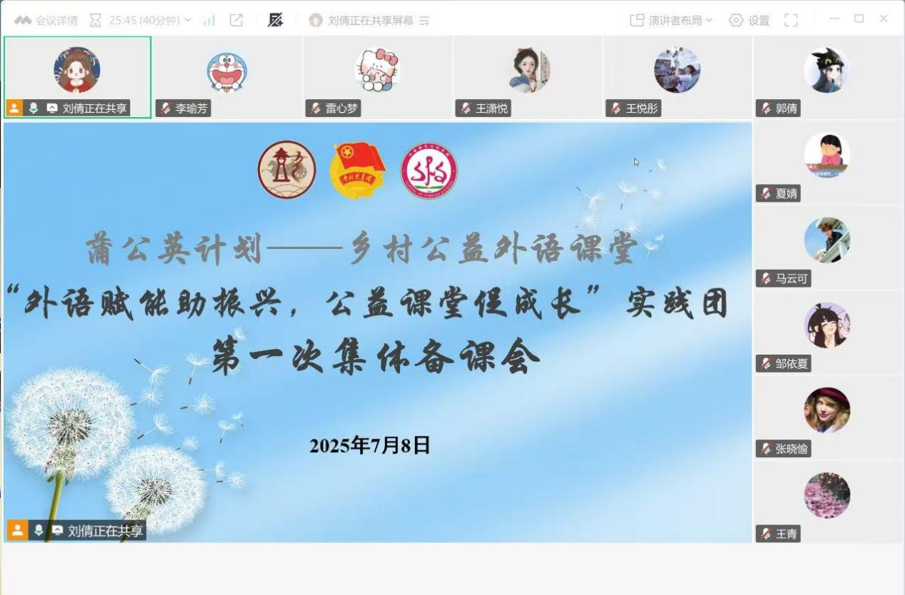 此次集体备课会为参加第三期“蒲公英计划——乡村公益外语课堂”暨“外语赋能促振兴,公益课堂促成长”社会实践活动的志愿者们提供了明确的指引。据悉,此次活动分为三升四、四升五、五升六三个年级组,每个年级组设有一位经验丰富的教学指导老师,年级组通过集体备课、小组讨论、教师审核、单独授课的形式开展公益外语课堂,层层把关,确保教学质量。