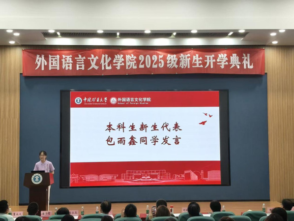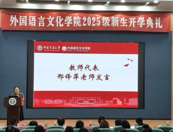 教师代表邢锋萍老师向全体新生表示热烈欢迎与诚挚祝贺。她结合外语教学经验,分享了学习方法与成长感悟,叮嘱新生们保持学习热情,珍惜校园时光,在探索中明确方向,在实践中提升自我。