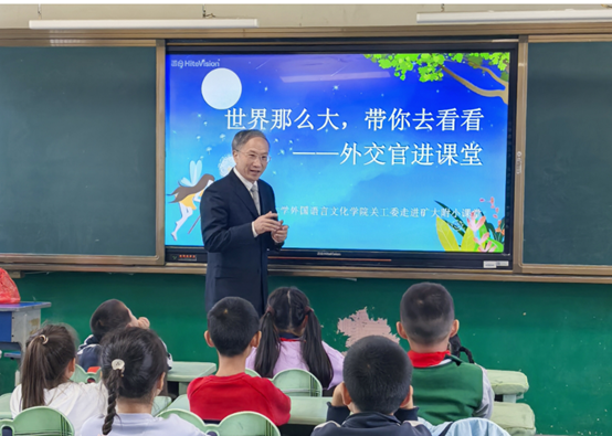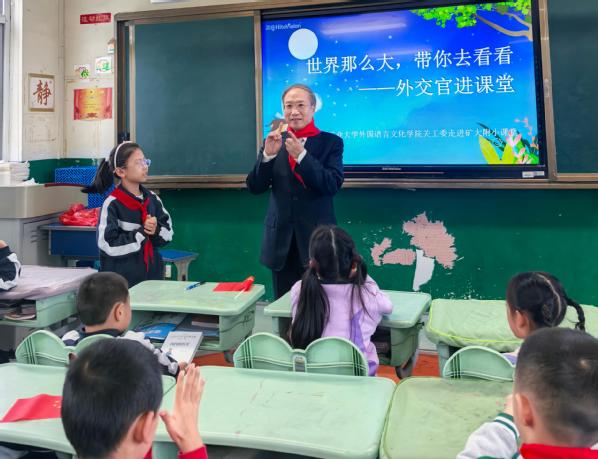 10月13日下午,电子游艺 关工委走进矿大附属小学,举行“世界那么大,带你去看看——外交官进课堂”主题活动。活动特邀学院原党委书记、驻德国大使馆教育处一等秘书何康林教授主讲,学院关工委副主任朱正中,学院办公室主任陈娅、院关工委秘书长闫瑾参加活动。三(一)班班主任张梦媛老师主持活动。