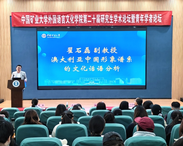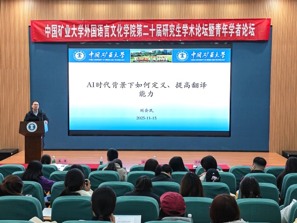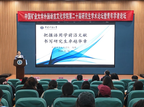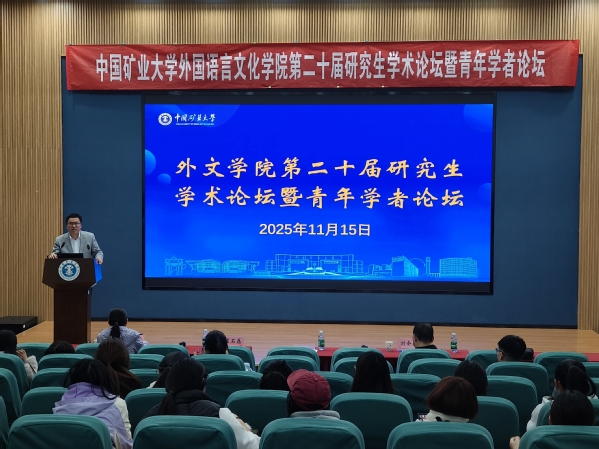 祖大庆在开幕式上致辞。他指出,外语学科正处于特色化、融合化发展关键期,学院将聚焦能源人文转型,推动外语优势与矿大能源特色深度绑定。他强调,研究生应当锚定能源特色,夯实融合根基,拥抱技术变革,提升服务效能,加强跨界交流,在能源人文定位中找准方向,打造“外语+能源”复合能力,共筑特色学术生态。