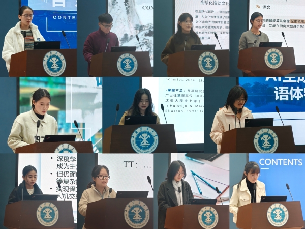 分享汇报环节,11位研究生按研究方向分为外国文学与文化研究组、语言学研究组、跨文化翻译与传播研究组三组,依次登台作学术报告。翟石磊、刘会民及高静分别展开专业点评。他们围绕论文标题精准度、摘要完整性、学术表达严谨性、专业术语一致性等关键维度进行细致分析,既肯定了研究生研究中的亮点,也客观指出可优化之处,并针对性地提出修改意见,为研究生进一步完善学术成果提供了有力指导。
