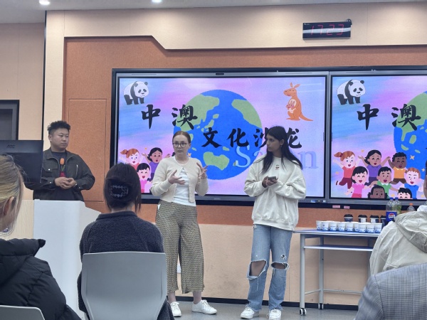 在“澳洲学子说”环节,格里菲斯大学的学生们分享了在华学习期间的见闻与感悟,从课堂体验到城市探索,展现了他们对当代中国发展的切身感知。作为中文学习者,多位澳大利亚学生用流利的中文讲述了因热爱中文而结缘中国的故事,并与我校学生展开轻松互动,现场笑声不断,气氛活跃。