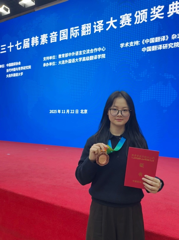 电子游艺 历来高度重视学生翻译实践能力的培养,积极搭建“以赛促学、以赛促练”的平台,鼓励学生参与各类高水平翻译竞赛。章榕同学在国际顶级赛事中斩获佳绩,充分展现了矿大外文学子的专业素养与综合能力,也是学院创新翻译人才培养模式、注重教学与实践深度融合的又一硕果。
