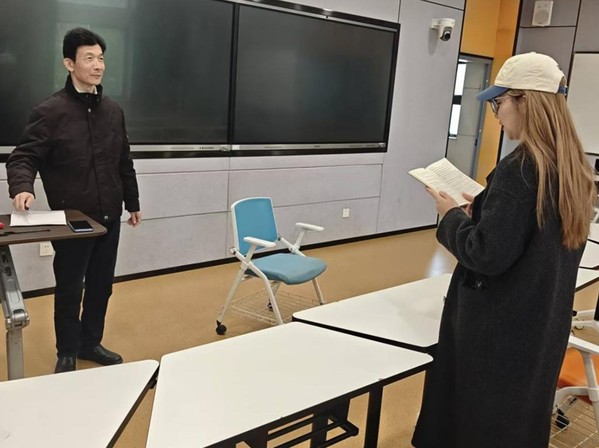 活动中,同学们依次朗读了预先准备的英文短文或演讲片段。朗读结束后,康杰老师对每位同学的发音进行了细致分析,并提出改进建议。同时,康老师现场进行发音示范,针对不同口音问题提供了个性化训练方案。