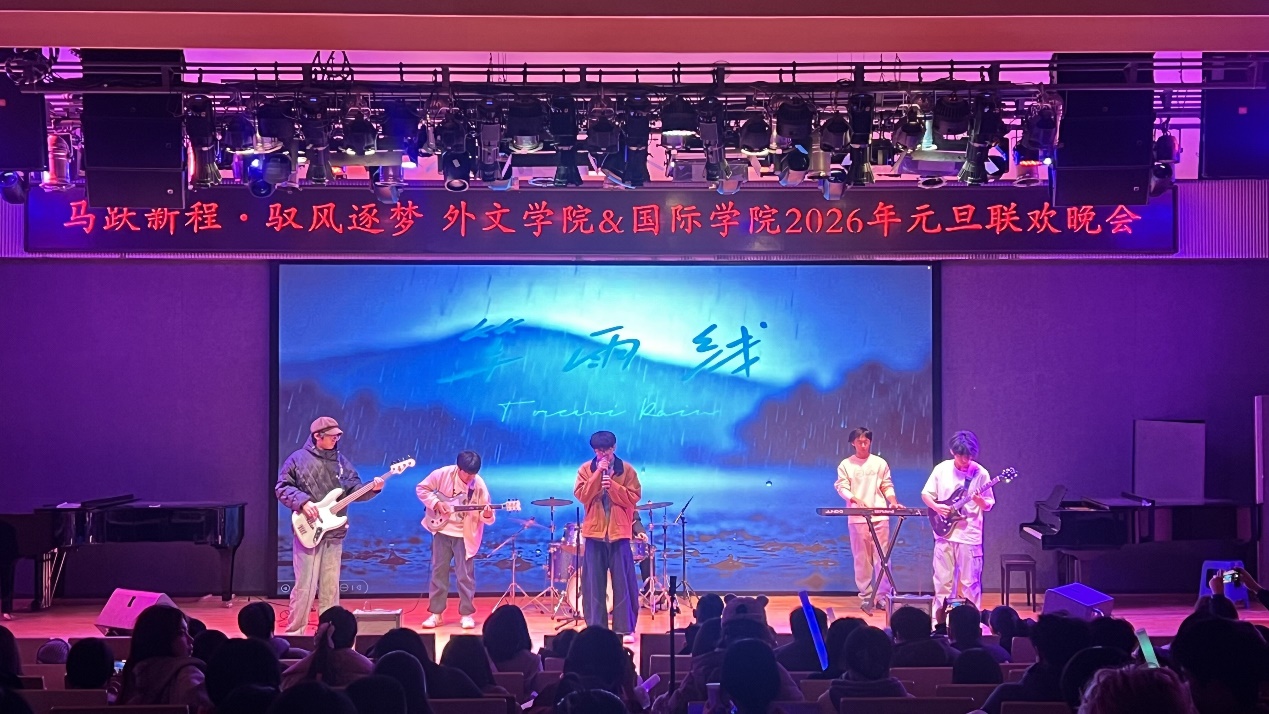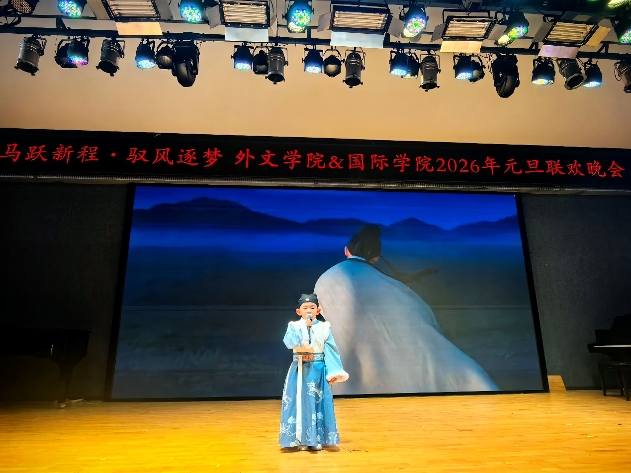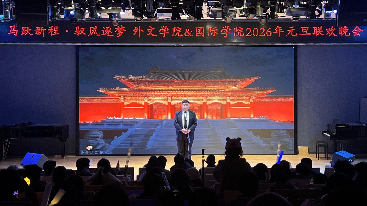 中场游戏环节师生互动热烈,现场节日氛围浓厚。晚会尾声,院团委、学生会、研究生会等团学组织负责人共同献上《相亲相爱一家人》和节日祝福,歌声中凝聚着学院各团学组织团结一心的深厚情谊,也为整场演出画上温暖而圆满的句号。外文与国际学院师生以青春之姿、奋进之态,共同告别收获满满的2025年,携手跃向崭新灿烂的2026年。