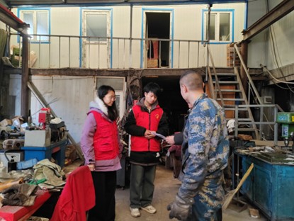 在菩提寺社区,韩宇恒等成员协助工作人员开展安全宣传与隐患排查,深入社区民营企业检查生产车间、仓储区域的水电及消防设施,并通过发放手册、现场讲解等方式普及安全知识,为平安春节筑牢防线。