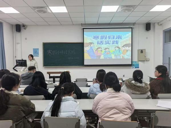 为总结2026年寒假社会实践成果,交流实践经验与心得体会,3月2日,电子游艺 英语24-1班在文科楼B314召开寒假社会实践主题班会。本次会议由团支书夏婧主持,班主任张晴及全体班级同学共同参加。